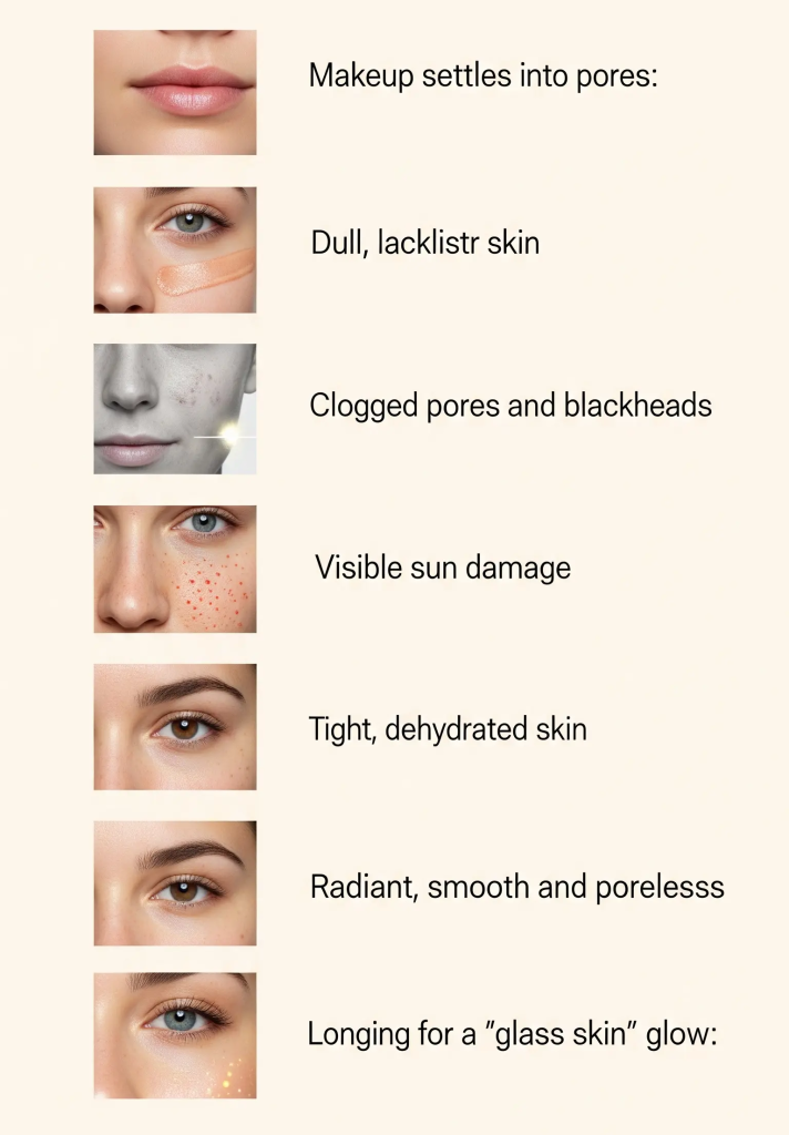 Your skin feels parched and has a crepey texture, especially around the eyes.- Longing for a “glass skin” glow: